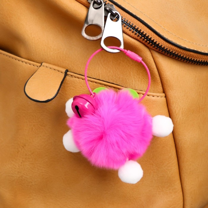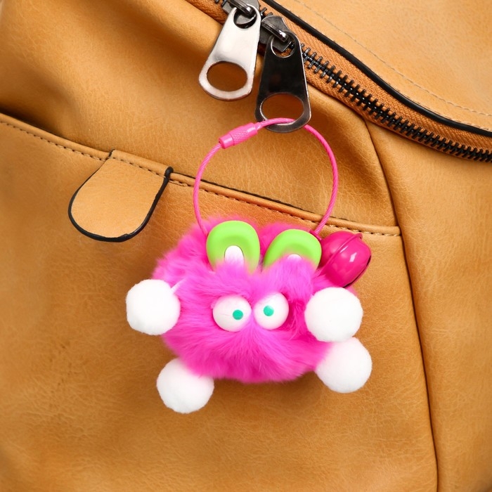 Пушистик на троссе с бубенчиком "Чудик с зелёными ушками" ярко-розовый 8 см