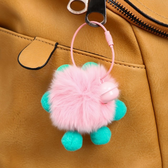 Пушистик на троссе с бубенчиком "Чудик с зелёными ушками" нежно-розовый 8 см