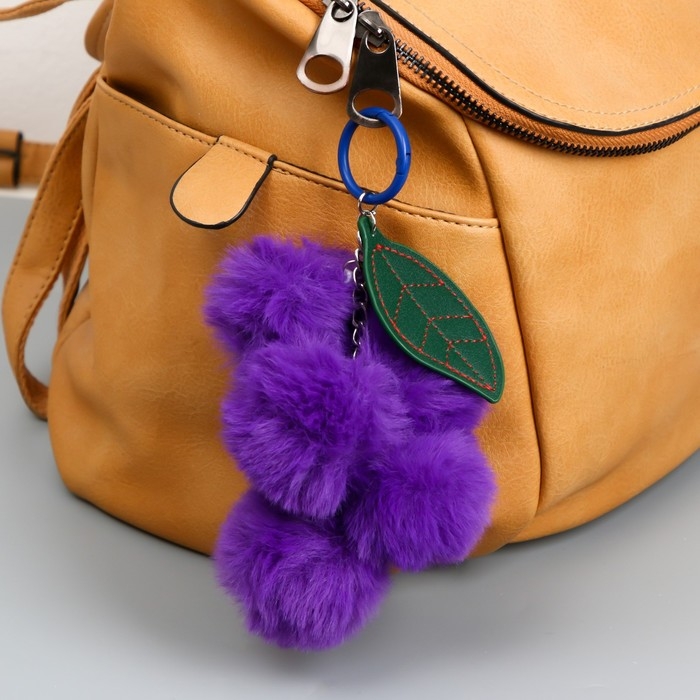 Пушистик на кольце "Виноград с листочком" фиолетовый 14 см
