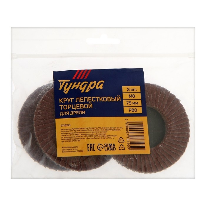 Круг лепестковый торцевой ТУНДРА, для дрели, М8, 75 мм, P80, 3 шт.