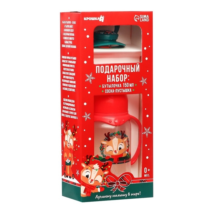 Подарочный набор новогодний «Наше чудо»: бутылочка для кормления 150 мл. + пустышка силикон ортодонтическая, Крошка Я