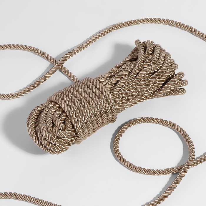 Шнур витой, d = 5 мм, 9 ± 1 м, цвет светло-серый