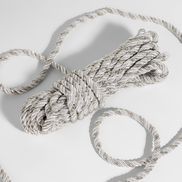 Шнур витой, d = 8 мм, 9 ± 1 м, цвет серебряный