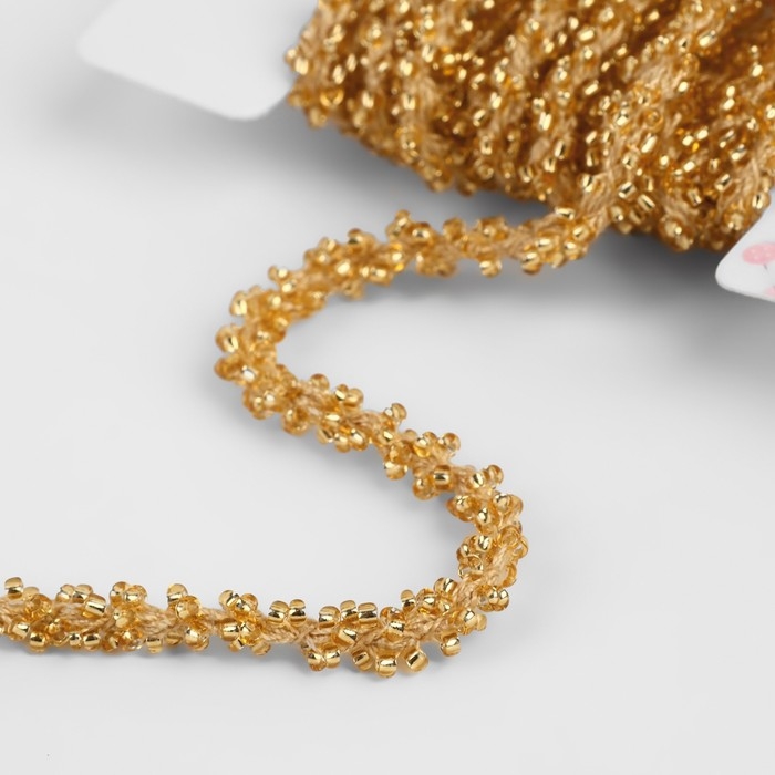 Тесьма декоративная с бисером, 6 мм, 2,7 ± 0,5 м, цвет золотой