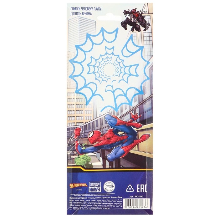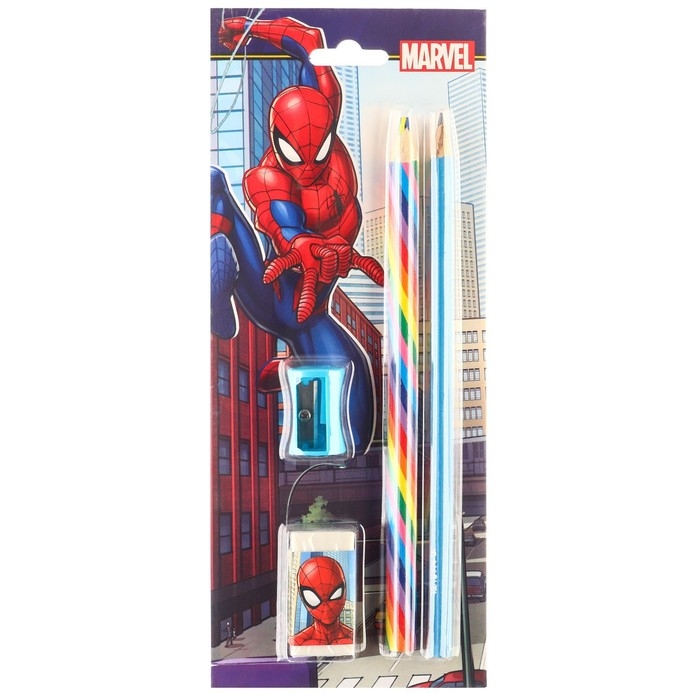 Набор канцелярский, точилка, ластик, карандаш, Человек-паук цвет МИКС