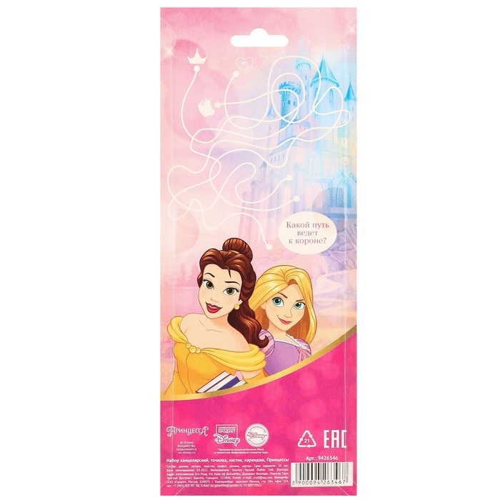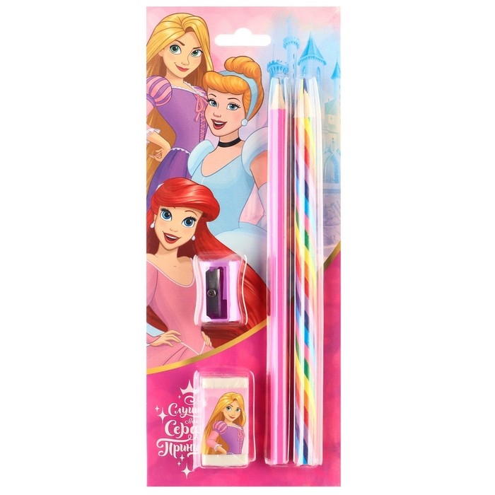 Набор канцелярский, точилка, ластик, карандаш, Принцессы цвет МИКС