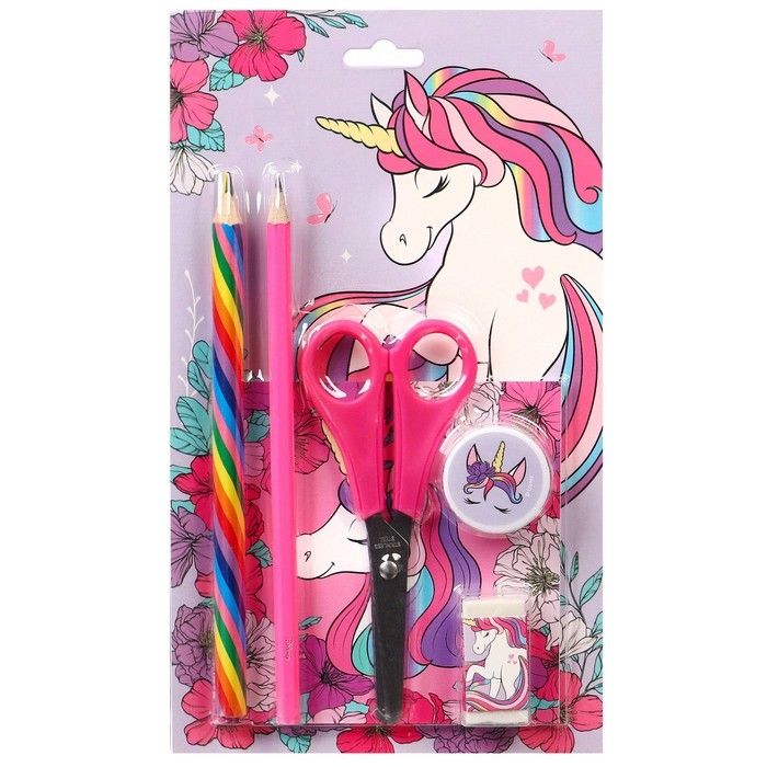 Набор канцелярский, блокнот, точилка, ластик, карандаш, ножницы, Минни и Единорог