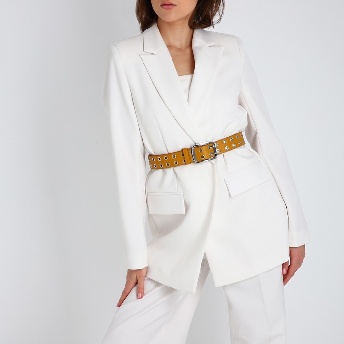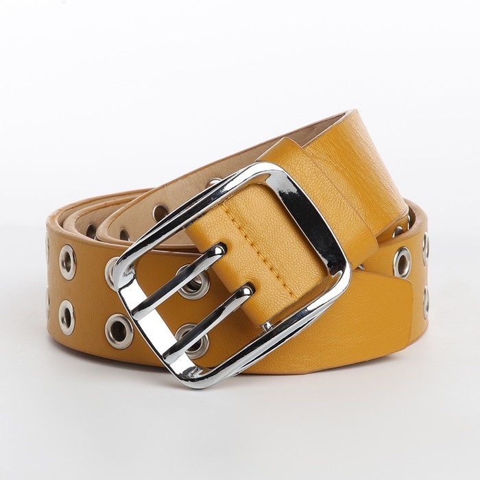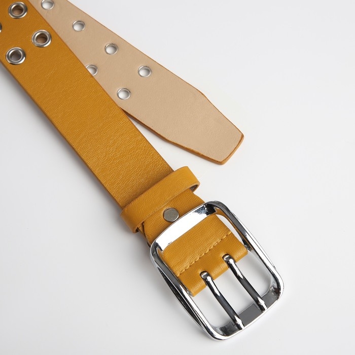 Ремень женский, ширина 4 см, люверсы, винт, пряжка металл, цвет горчичный
