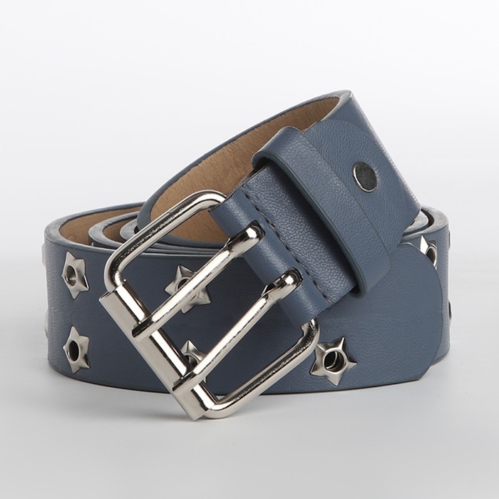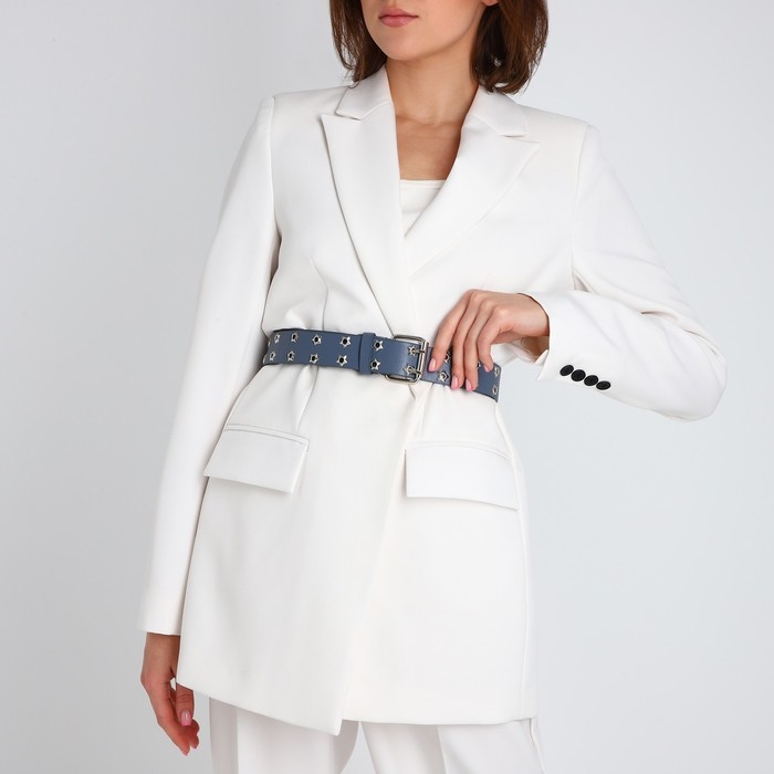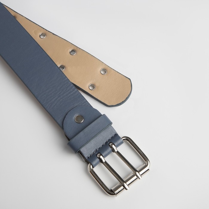 Ремень женский, ширина 3.8 см, люверсы, винт, пряжка металл, цвет голубой