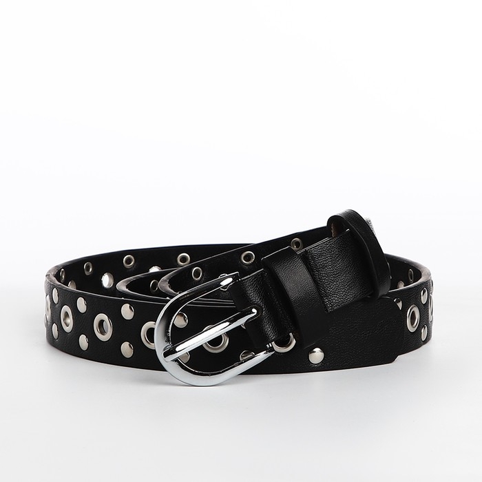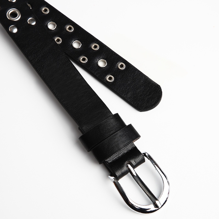 Ремень женский, ширина 2.3 см, люверсы, пряжка металл, цвет чёрный