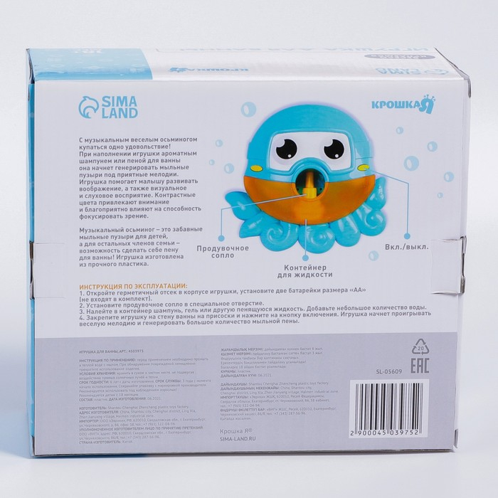 Музыкальный осьминог - это забавные, веселые мыльные пузыри для детей, а для остальных членов семьи - это возможность сделать себе пену для ванны! Игрушка изготовлена из прочного пластика.