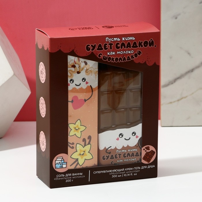 Подарочный набор косметики «Пусть жизнь будет сладкой»: гель для душа 300 мл и соль для ванны 200 мл, ЧИСТОЕ СЧАСТЬЕ