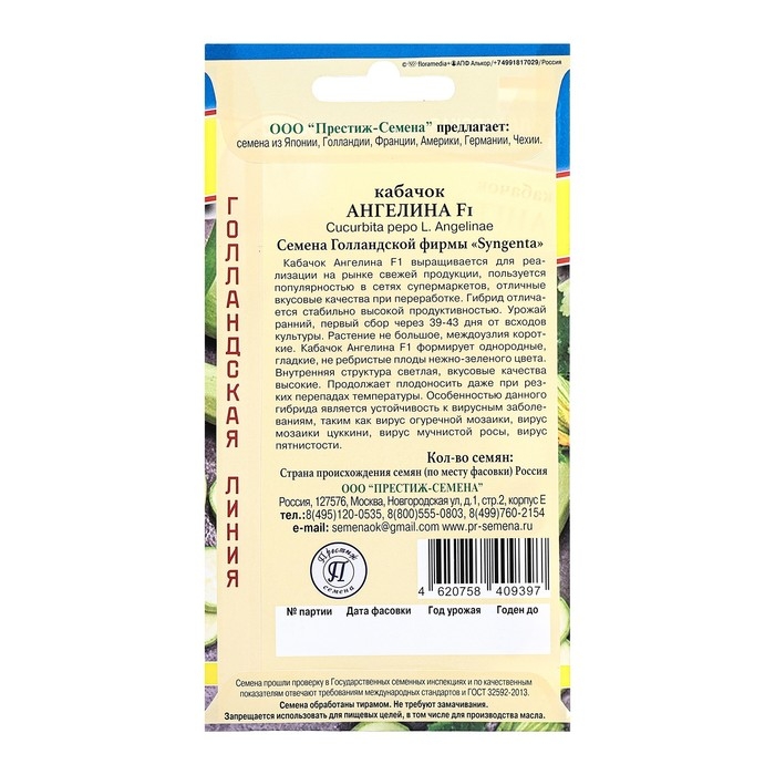 Семена Кабачок "Ангелина F1", ц/п, 5 шт.