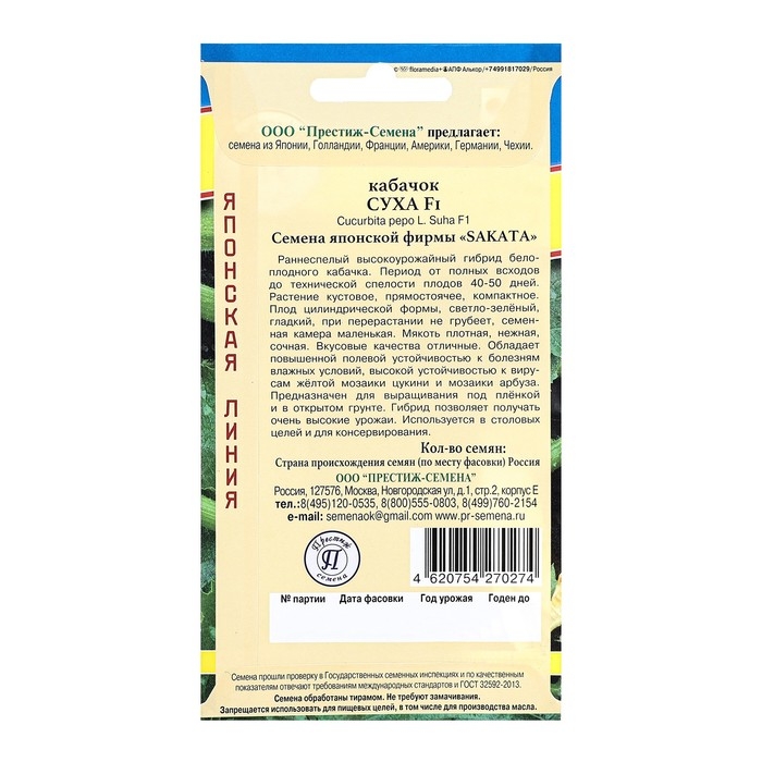 Семена Кабачок "Суха F1", ц/п, 5 шт.