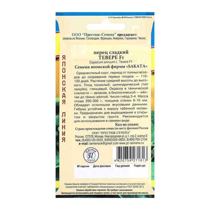 Семена Перец сладкий "Тевере F1", ц/п, 5 шт.
