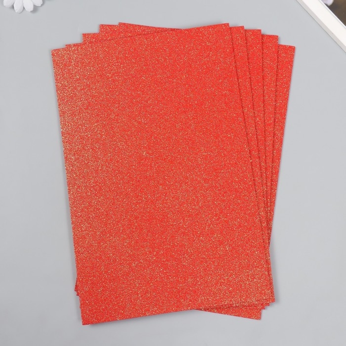 Фоамиран "Красный апельсин блеск" 2 мм формат А4 набор 5 листов