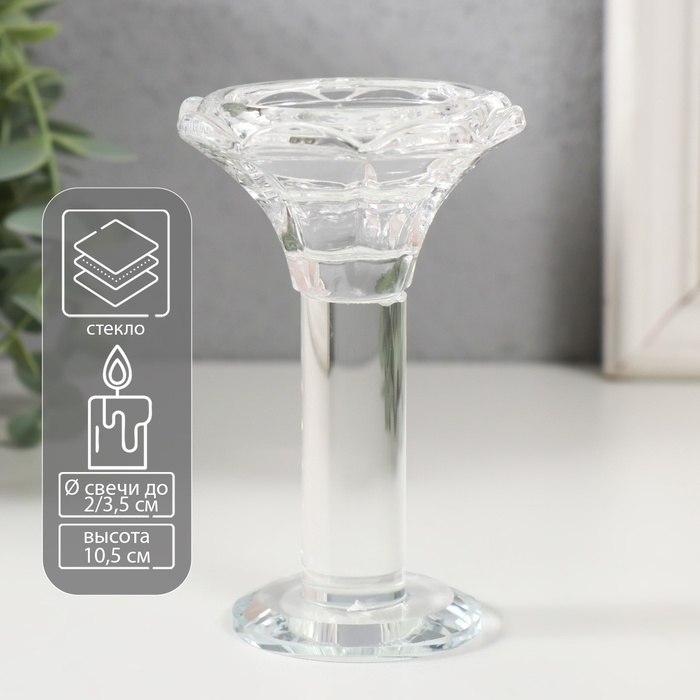 Подсвечник стекло на 1 свечу "Бутон на ножке" d=2 и 3,5см 6,7х6,7х10,5 см