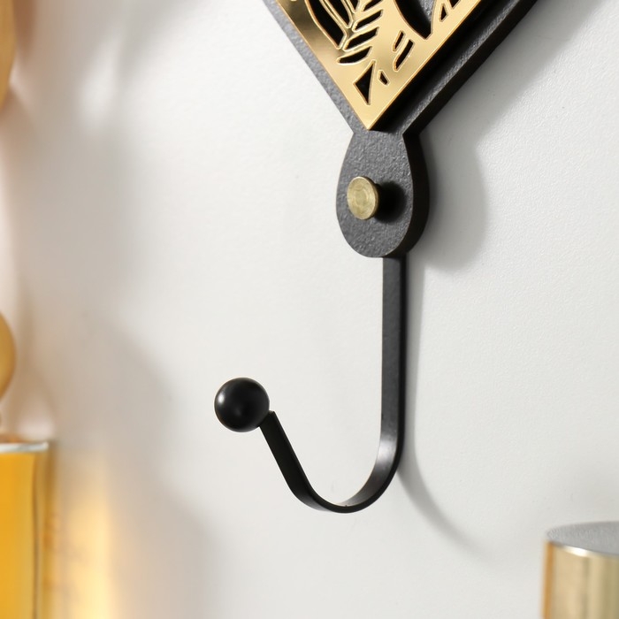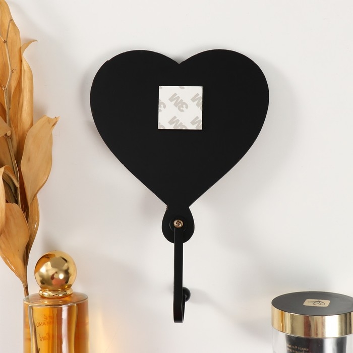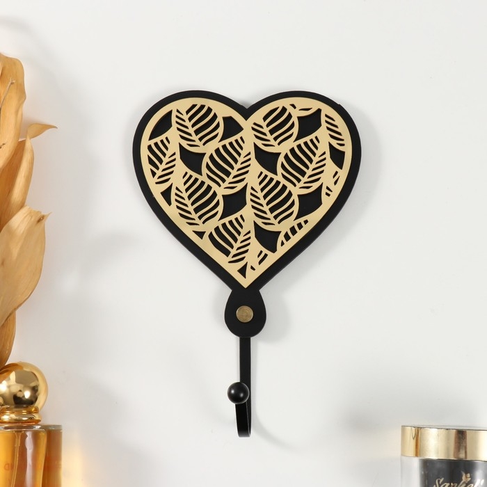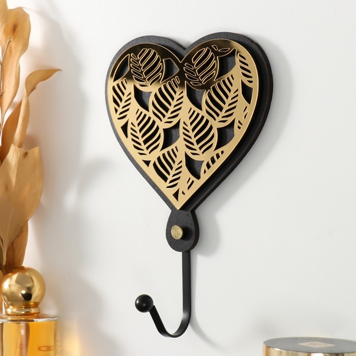 Крючок декоративный дерево "Сердце с листьями" чёрный, зеркальный 4,3х12,4х19 см