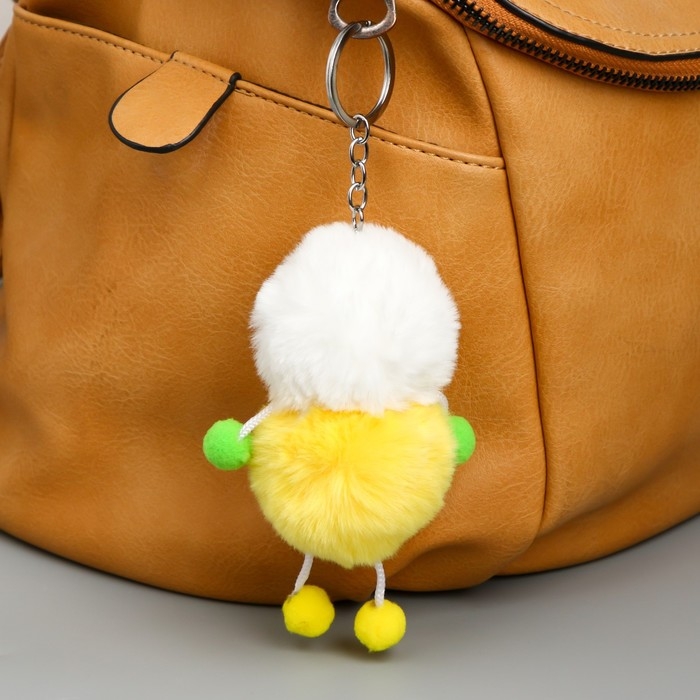 Пушистик на кольце "Утёнок" бело-жёлтый 6х6х9,5 см