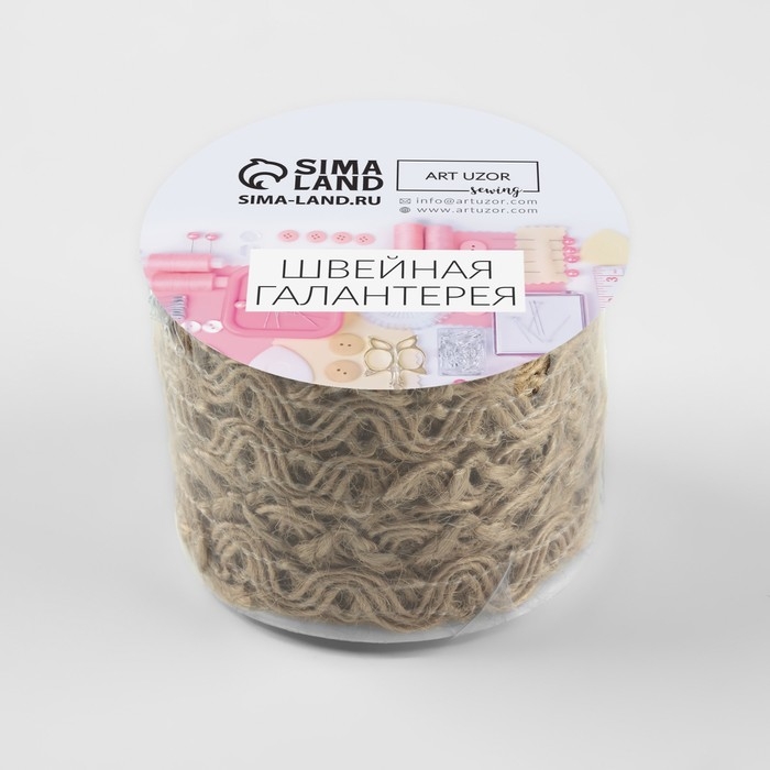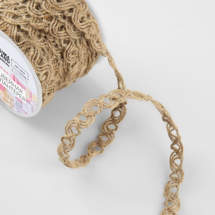 Тесьма декоративная холщовая «Коса», 10 мм, 10 ± 0,5 м, цвет бежевый