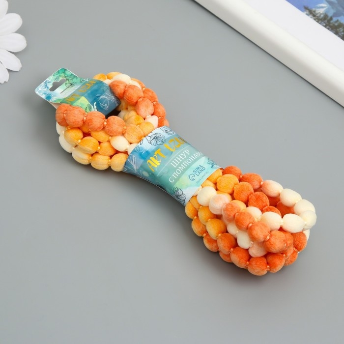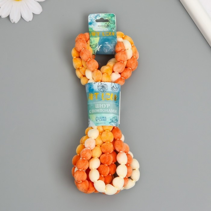 Шнур с помпонами "Кофе с молоком" намотка 2 м