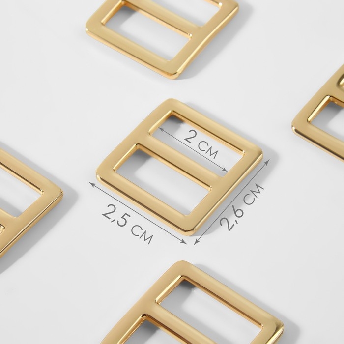 Пряжка регулирующая, двухщелевая, внутренняя ширина - 20 мм, толщина - 2,5 мм, 5 шт, цвет золотой