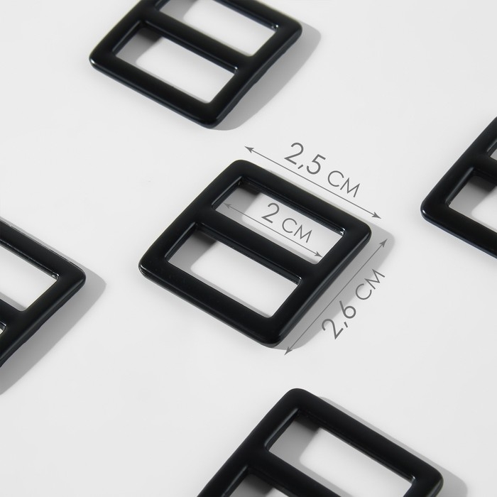 Пряжка регулирующая, двухщелевая, внутренняя ширина - 20 мм, толщина - 2,5 мм, 5 шт, цвет чёрный матовый