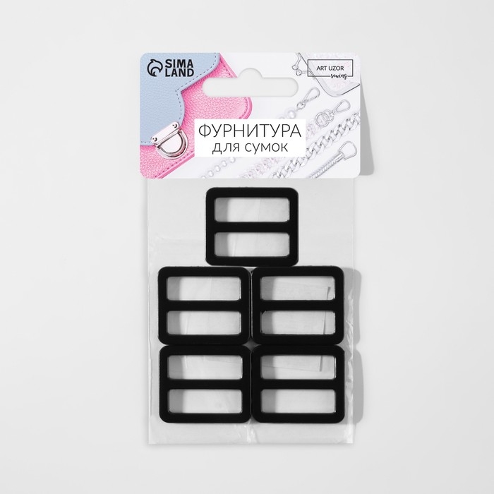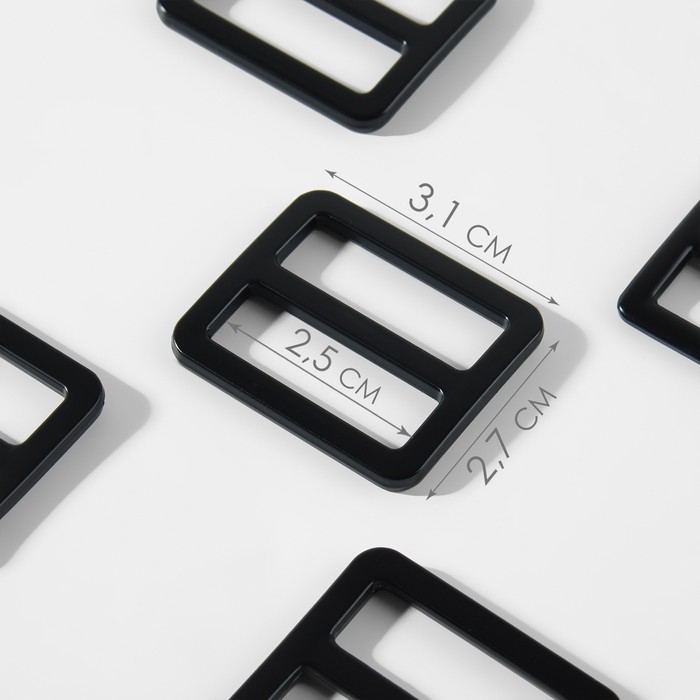 Пряжка регулирующая, двухщелевая, внутренняя ширина - 25 мм, толщина - 3 мм, 5 шт, цвет чёрный матовый