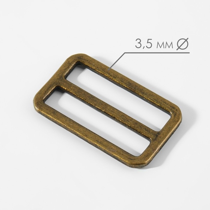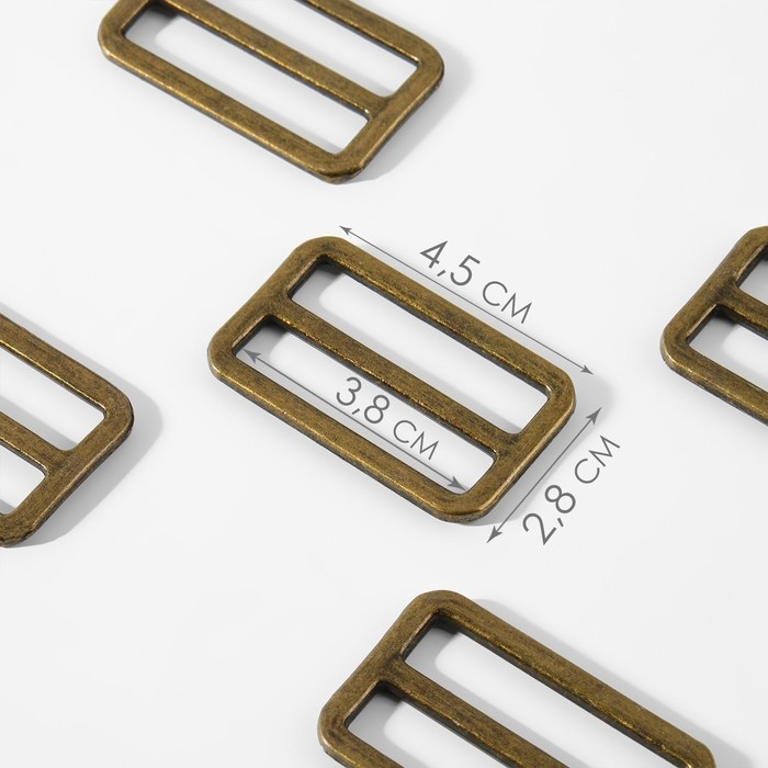Пряжка регулирующая, двухщелевая, внутренняя ширина - 38 мм, толщина - 3,5 мм, 5 шт, цвет бронзовый