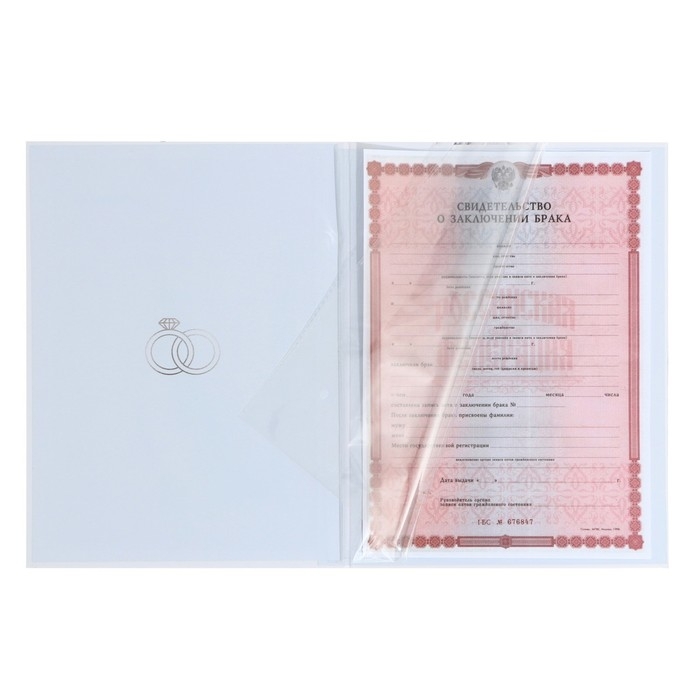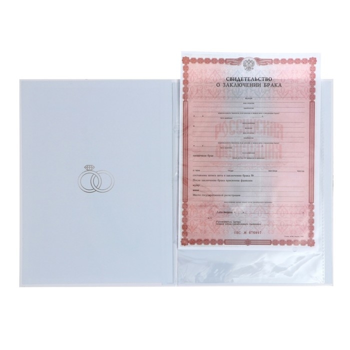 Обложка для свидетельства о заключении брака формата А5 станет лучшим обрамлением для вашего первого совместного документа. Красивая свадебная папка подчеркнёт всю торжественность бракосочетания, она будет напоминать вам о светлом дне свадьбы. В такой папке ваш семейный документ не помнётся, не испачкается и будет сохранять свою красоту всю жизнь. Оригинальный дизайн папки создаст отличное настроение новобрачным и станет хорошим презентом на свадьбу или её годовщину. Папка выполнена из плотного переплётного картона 1,25 мм. Папка с файлом А4.