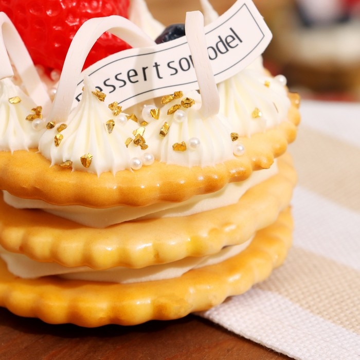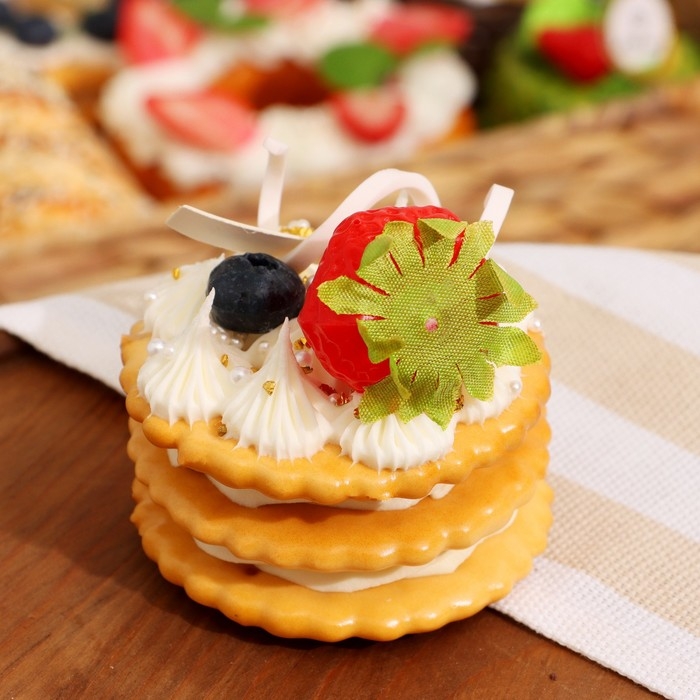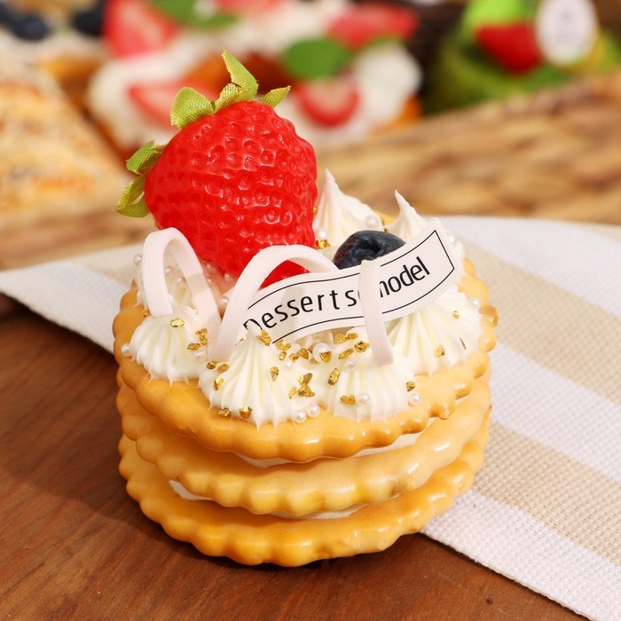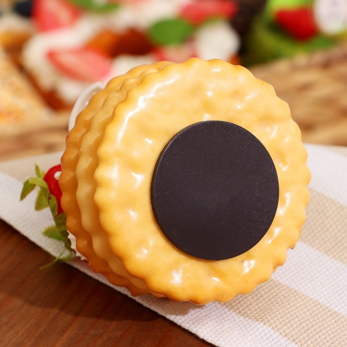 Муляж - магнит "Крекер с клубникой" 7х7х6см