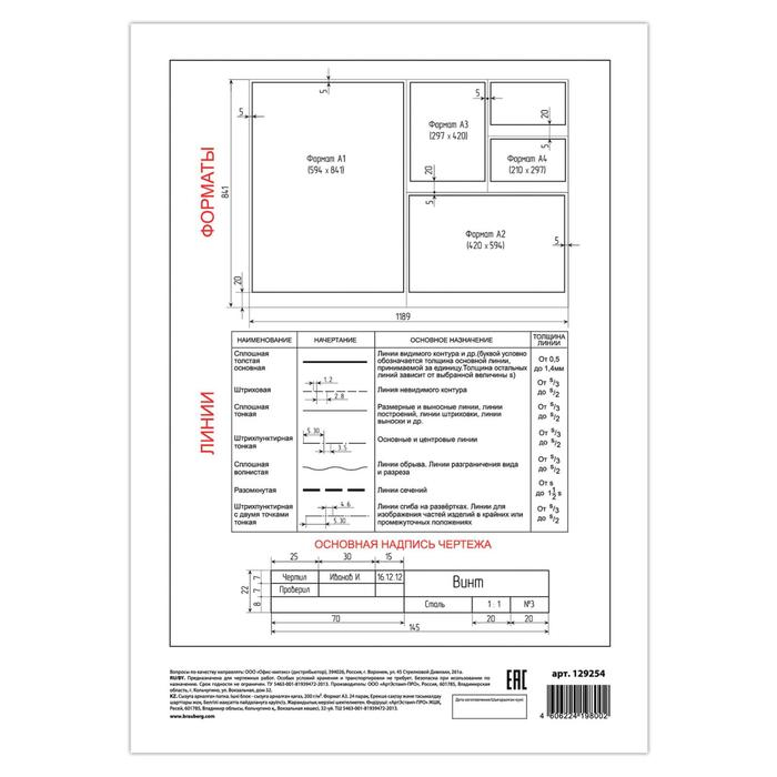 Папка для черчения А3, 24 листа, 200 г/м, BRAUBERG, без рамки, ватман ГОЗНАК КБФ