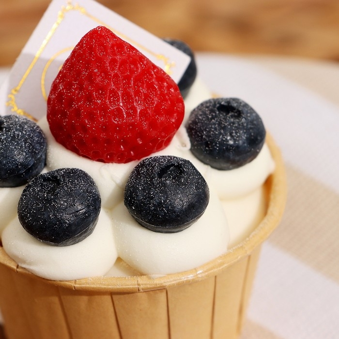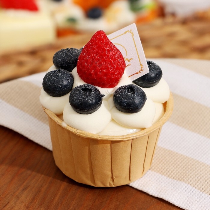 Муляж - магнит "Маффин с клубникой" 6х6х8см