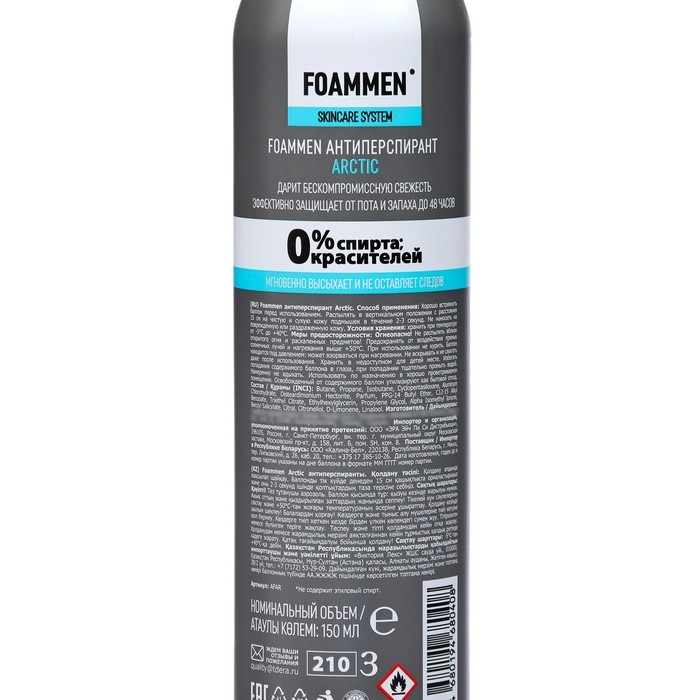 Дезодорант мужской Foammen Arctic 48 ч, 150 мл