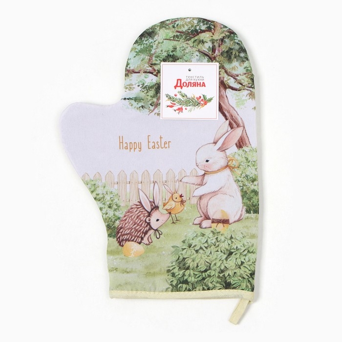 Варежка-прихватка Доляна "Зверьки" 20х28 см, 35% хл, 65% пэ, ватин 250 г/м2