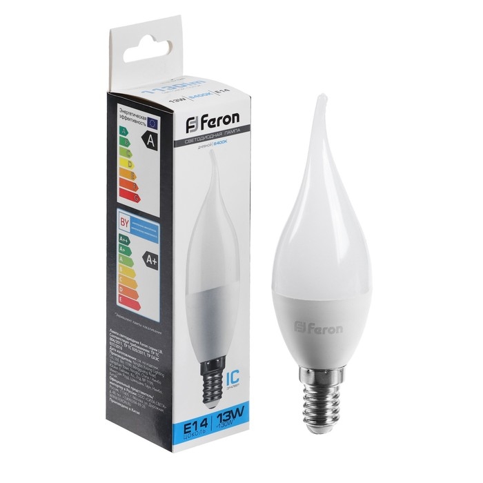 Лампа светодиодная FERON, (13W) 230V E14 6400K С37T, LB-970