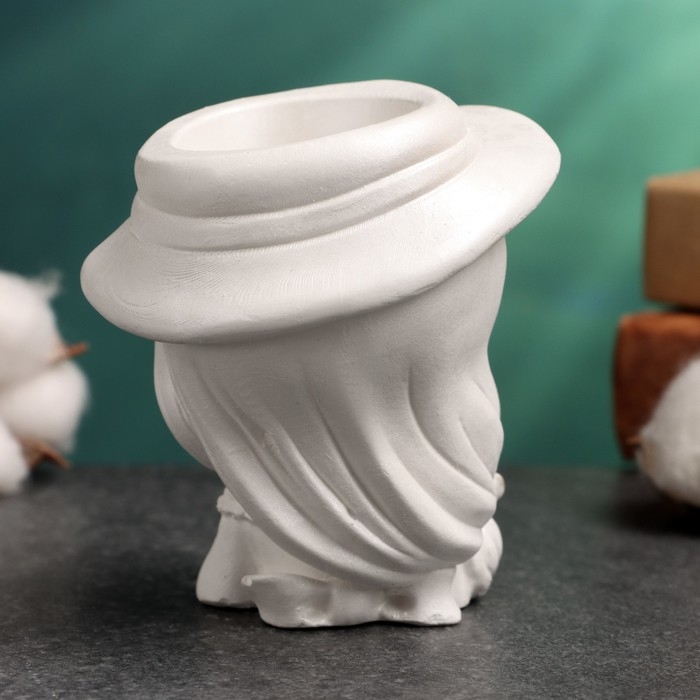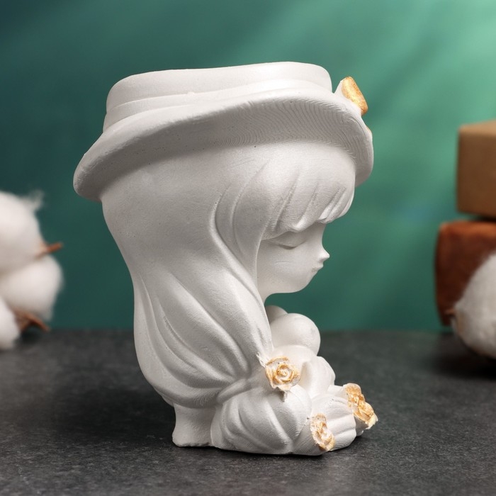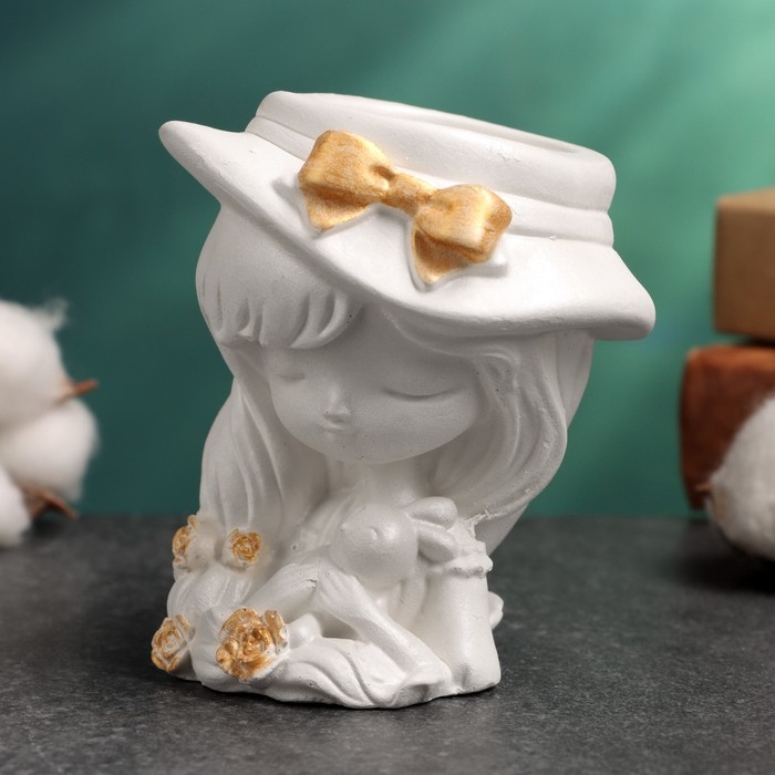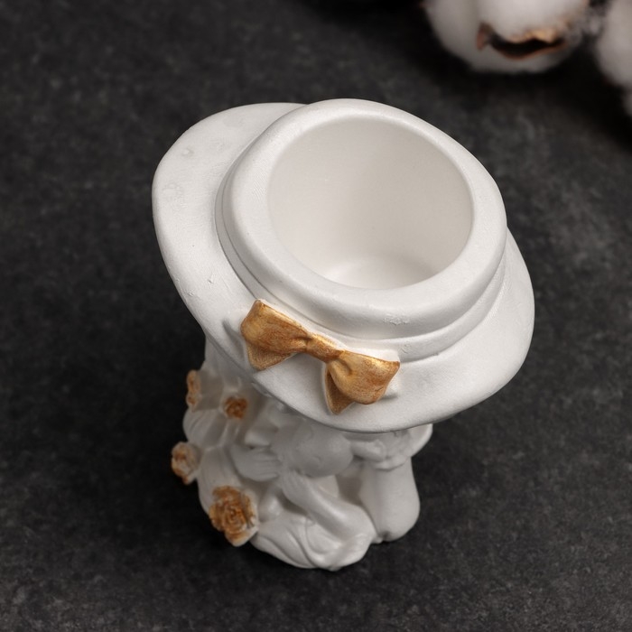 Подсвечник "Девочка в шляпе с зайкой" перламутровый, 8х8х9см