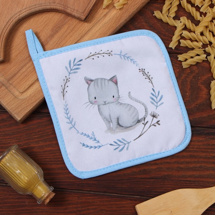 Прихватка Доляна "Котенок" 17х17 см, 35% хл, 65% пэ, ватин 250 г/м2
