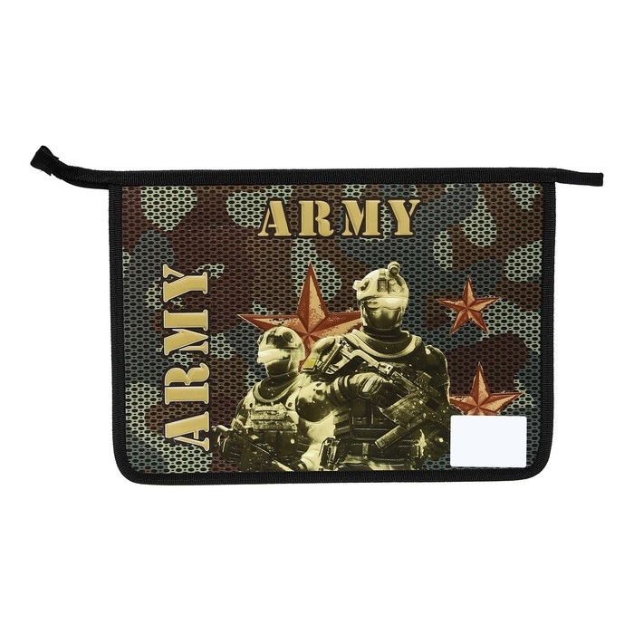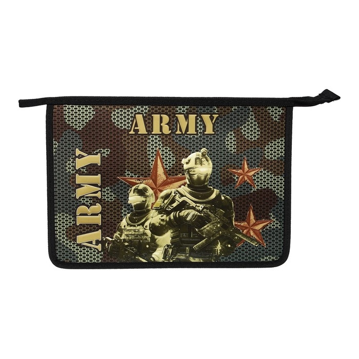 Папка для тетрадей А4, 340 х 245 х 50 мм, молния сверху, объемный 3D рисунок, "Армия"