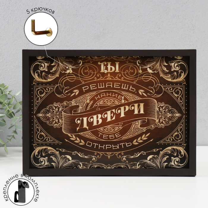 Ключница открытая "Ты решаешь какие двери открывать" 5 крючков, 23х32 см