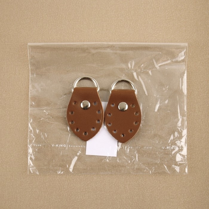 Петля пришивная для сумки, с полукольцом, пара, 6 × 3,5 см, цвет коричневый/никель