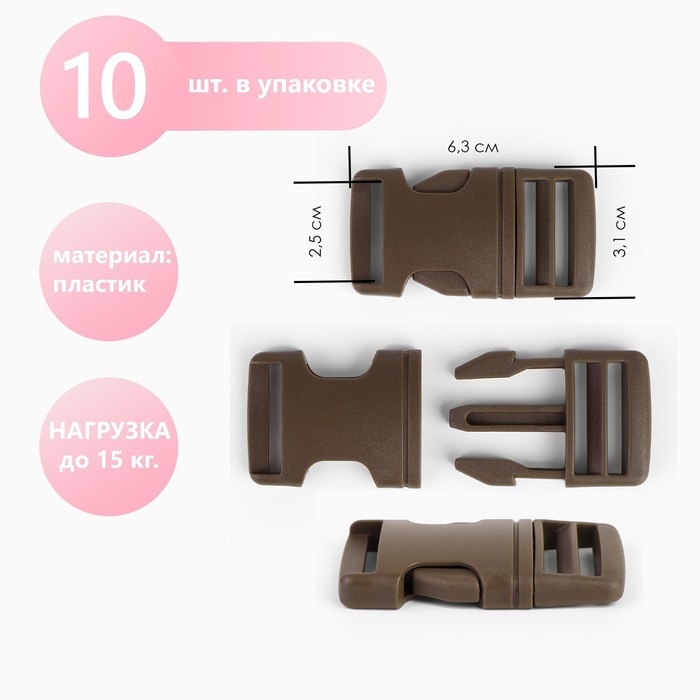 Фастекс 25 мм, нагрузка до 15 кг, 10 шт, цвет тёмно-коричневый, цена за 1 набор
