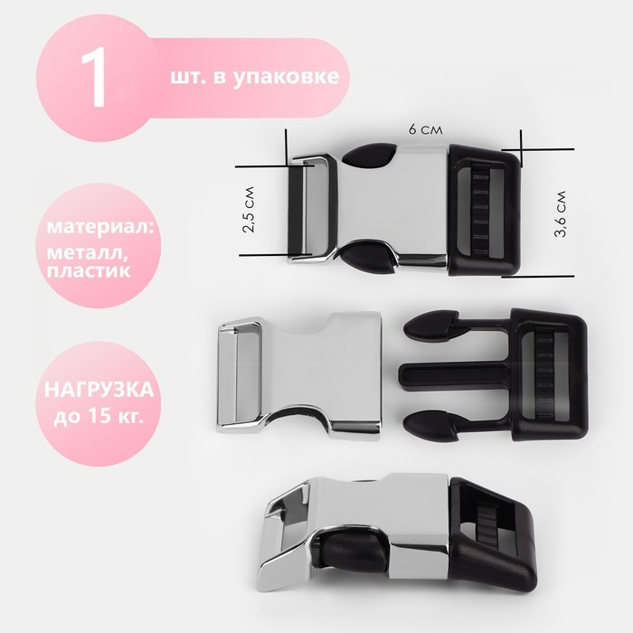 Фастекс 25 мм, нагрузка до 15 кг ,металл/пластик, цвет серебряный/чёрный