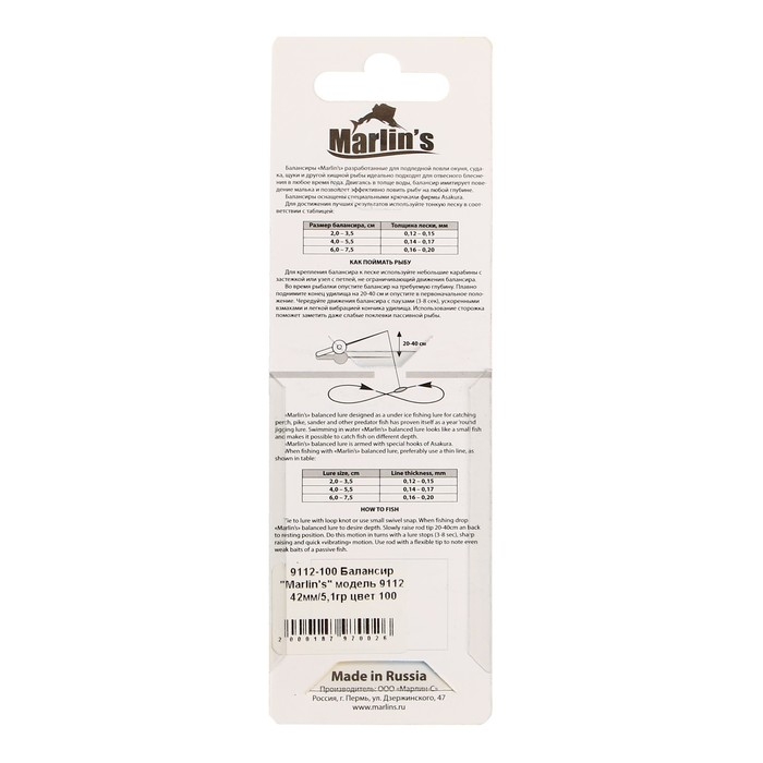 Балансир Marlin's 9112, 4.2 см, 5.1 г, цвет 100