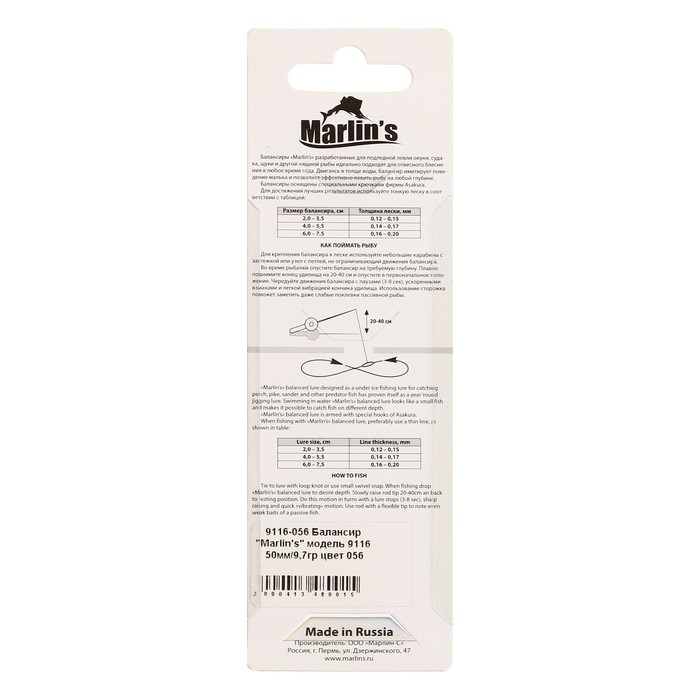 Балансир Marlin's 9116, 5 см, 9.7 г, цвет 056