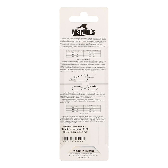 Балансиры «Marlin’s» - превосходно подходят для ловли любого речного хищника. Они обладают виртуозной игрой и идеальной сбалансированностью. Оптимальный ассортимент форм и широкая гамма расцветок позволит удовлетворить любые потребности рыболовов.