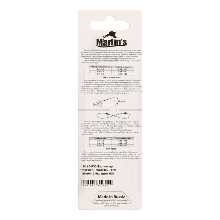 Балансиры «Marlin’s» - превосходно подходят для ловли любого речного хищника. Они обладают виртуозной игрой и идеальной сбалансированностью. Оптимальный ассортимент форм и широкая гамма расцветок позволит удовлетворить любые потребности рыболовов.