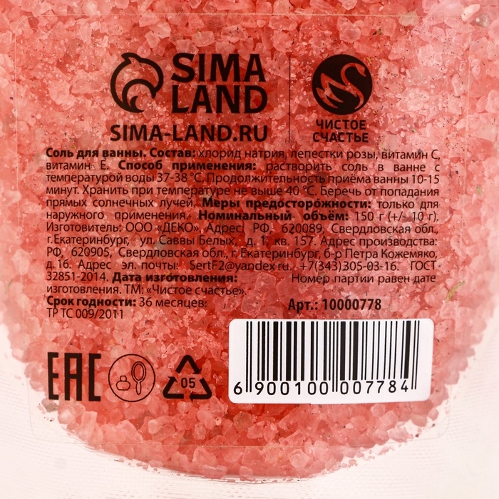 Соль для ванны с бутонами болгарской розы, 150 г, Новый Год