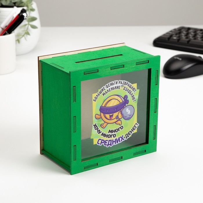 Копилка "Хочу много средних денег!" 14х14х8 см