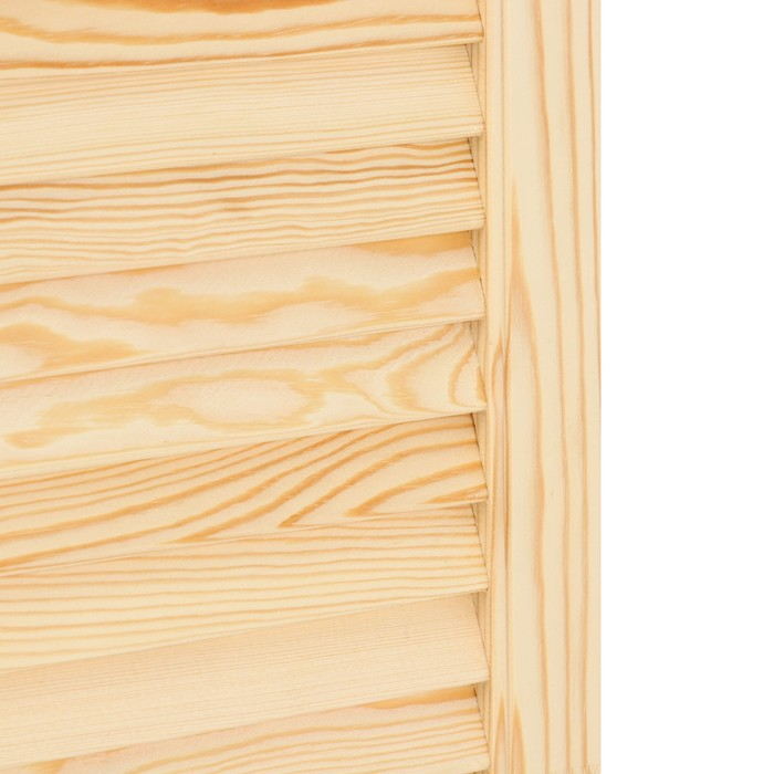 Жалюзийная дверь изготовлена из сосны. Такие двери используются в помещениях, где требуется постоянное проветривание. Также применять жалюзийный фасад можно для шкафов, тумбочек для ванной комнаты, на кухне, балконе или в кладовке. С помощью изделия легко создать уникальный дизайн мебели или обновить её внешний вид.